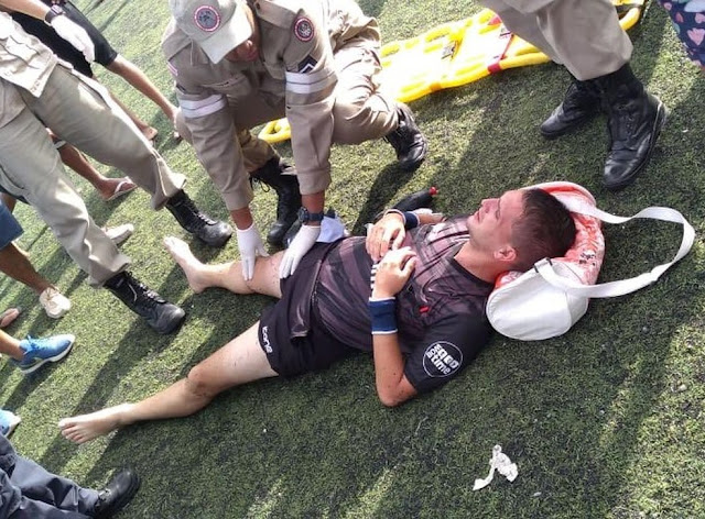 “Ele entrou no meio do campo com as crianças me agredindo verbalmente e depois com socos e chutes. Eu tive um edema na perna e luxação também na perna, quadril e rosto. É a primeira vez que acontece isso comigo, estou transtornado pelo que aconteceu, nunca pensei em passar por isso”, declarou Jeferson.