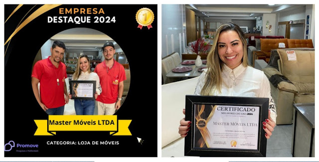 LOJA MASTER MÓVEIS É ESCOLHIDA DESTAQUE 2024 E RECEBE PRÊMIO MELHORES DO ANO NO RAMO DE MÓVEIS EM CARANGOLA