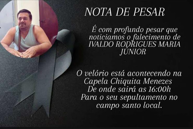 É com profundo pesar que noticiamos o falecimento de Ivaldo Rodrigues Maria Júnior, mas conhecido como Júnior. Vítima de infarto, Juninho passou mal nesta sexta-feira (27/12/2024), na Rua Itaperuna, em frente ao bar do Maurício, na parte baixa do bairro Lia Marcia, falecendo instantes depois em sua residência, provocando luto e comoção por toda Bom Jesus do Itabapoana (RJ).